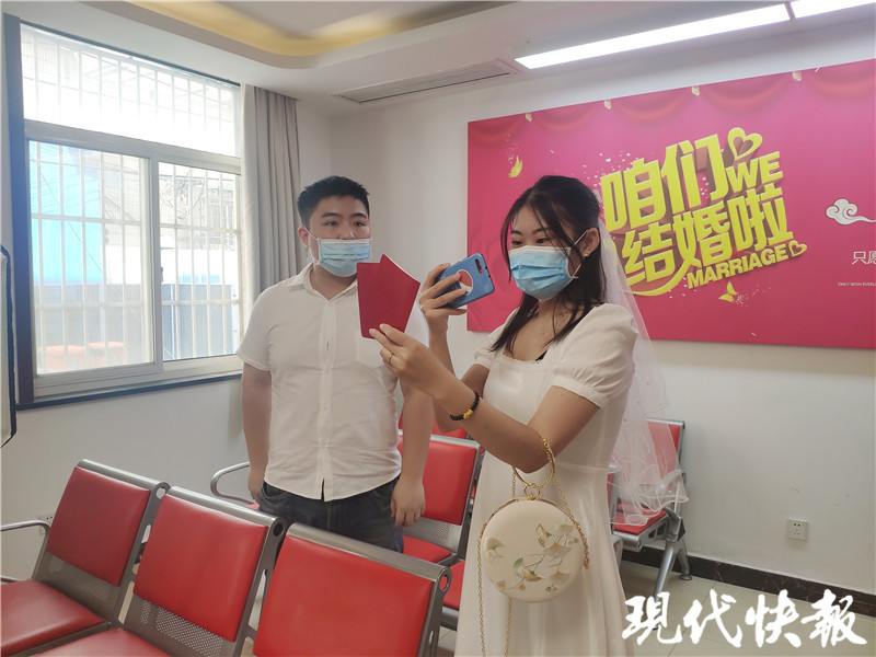 現(xiàn)代快報(bào)記者了解到,陳華是一名護(hù)士,一年前經(jīng)過朋友介紹與陶宇欣相識(shí)。“我們倆都是幽默開朗的性格,每天都有說不完的話。領(lǐng)證對(duì)我們來說很有意義,所以精心準(zhǔn)備了全套裝備。”陳華說,在她看來,婚禮更多是給家人儀式感,但領(lǐng)證是給自己的儀式感。“在來領(lǐng)證的路上,一些路人看到我?guī)е^紗,也向我們表達(dá)了祝福,我感覺這比婚禮儀式更溫馨,更難忘。”