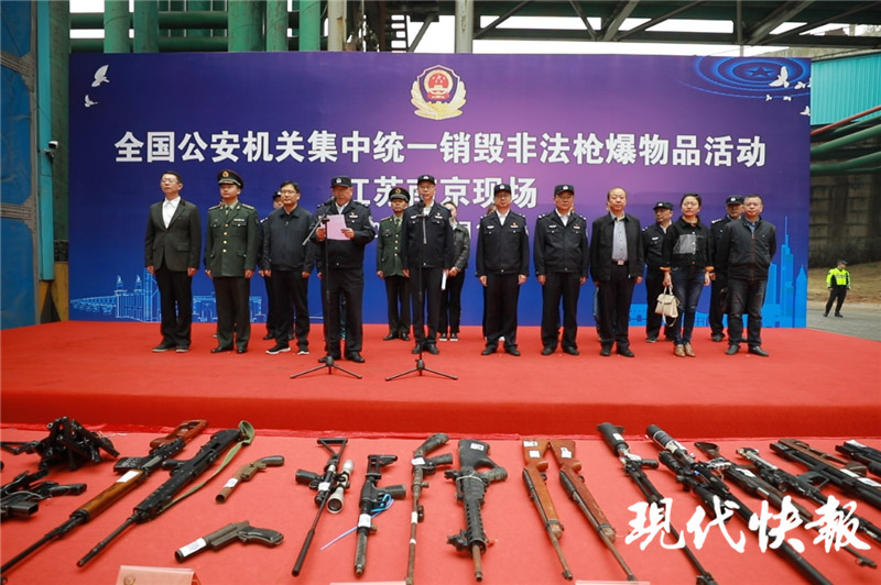 江蘇省公安廳黨委副書記、常務(wù)副廳長尚建榮,省和南京市打擊整治槍支爆炸物品違法犯罪聯(lián)席會議部分成員單位和社會各界代表,在南鋼中心現(xiàn)場參加銷毀活動。