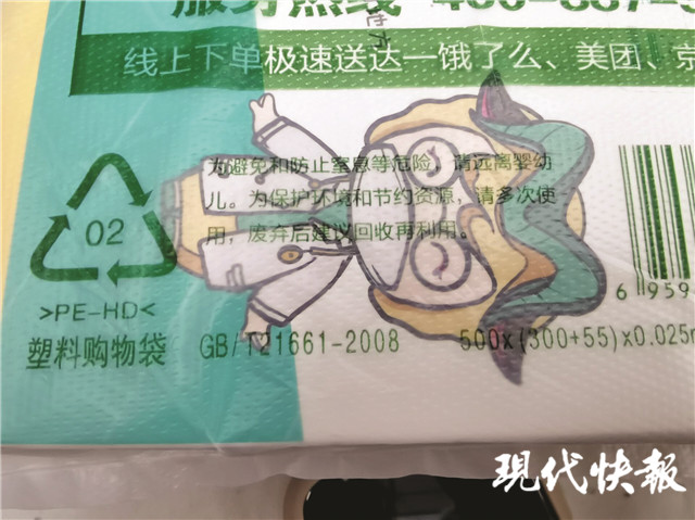 當(dāng)天,記者還通過(guò)在門店、網(wǎng)絡(luò)平臺(tái)購(gòu)買等方式,取得了南京4家藥店的塑料購(gòu)物袋,所獲塑料袋均明示主要材質(zhì)為“PE-HD”,還有“02”的標(biāo)識(shí)。據(jù)了解,PE-HD是指高密度聚乙烯塑料,02是高密度聚乙烯材質(zhì)代號(hào)。這種塑料根據(jù)用途可以制成薄厚不同的食品袋,如果不被污染可以反復(fù)使用,節(jié)約資源。不過(guò)這也意味著,在記者當(dāng)天的調(diào)查范圍內(nèi),所有的書店和藥店使用的仍是不可降解塑料袋。