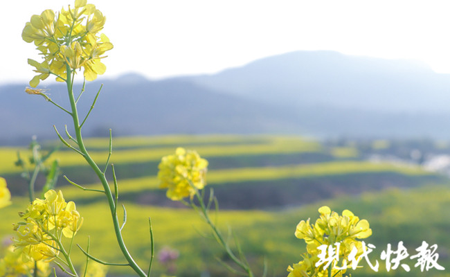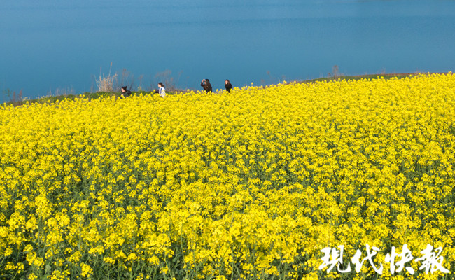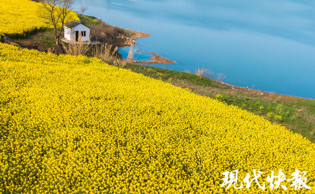 在句容天王鎮(zhèn)金山村,到處是一派春意盎然的景象,崗坡梯田上、山下水庫(kù)邊,滿(mǎn)眼是金黃的油菜花,或?qū)訉盈B疊,搖曳多姿,或平展鋪層,金浪翻滾。