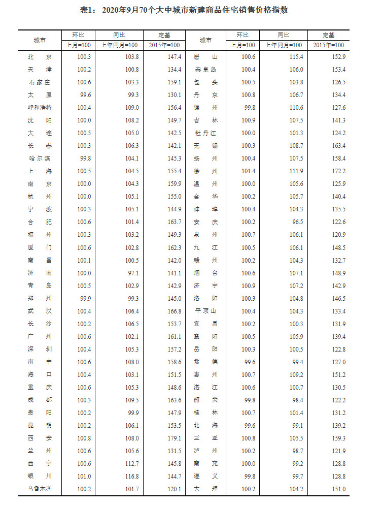 (記者 張瑜)10月20日,國家統(tǒng)計(jì)局公布了2020年9月70個大中城市新建商品住宅銷售價(jià)格指數(shù)?,F(xiàn)代快報(bào)記者了解到,總體來看70個大中城市商品住宅銷售價(jià)格漲幅略有回落。南京9月份新房價(jià)格環(huán)比持平,同比上漲4.3%;二手房價(jià)格環(huán)比上漲0.6%,同比上漲3.9%。