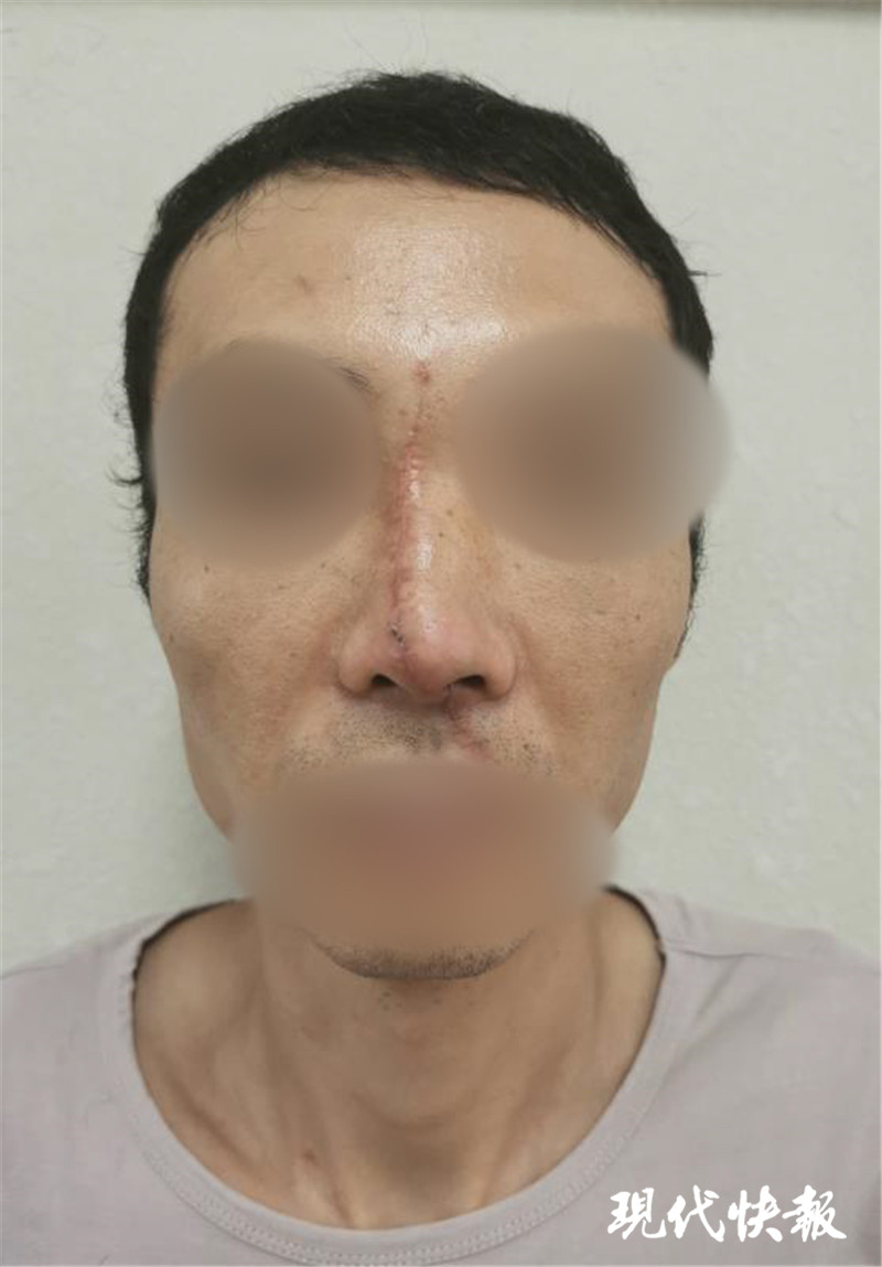 7月下旬的一天,剛過30歲的張強在操作電鋸干活時,不料電鋸反彈,其面部被電鋸豎著切開,鼻子被切成兩半,傷口沿額頭、鼻子一直延伸到唇部,傷情非常嚴(yán)重。