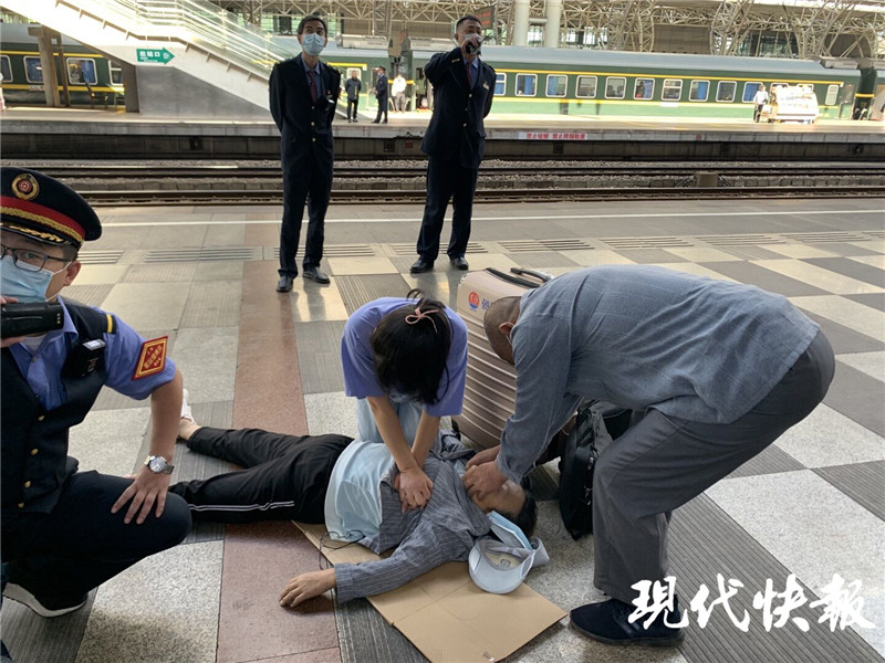 (通訊員 郭明慧 見習(xí)記者 陳子秋 記者 顧元森)10月5日下午,在南京火車站站臺(tái)上,一名大媽在等候火車進(jìn)站時(shí),突然暈倒在地。所幸江蘇省人民醫(yī)院的一名實(shí)習(xí)醫(yī)生及時(shí)站出來(lái)施救,直至救護(hù)車趕到,將大媽送往醫(yī)院。