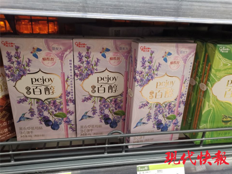 時常有顧客在經(jīng)過時,會被這款包裝吸引,好奇地翻看、購買。一名女孩拿走了一盒,她告訴記者,購買是因為覺得這個口味很新奇,“如果能美白,多吃零食也沒有負罪感了。”附近的售貨員介紹說,這是最近流行的新配方,從補貨的頻率看,銷量還是很不錯的。