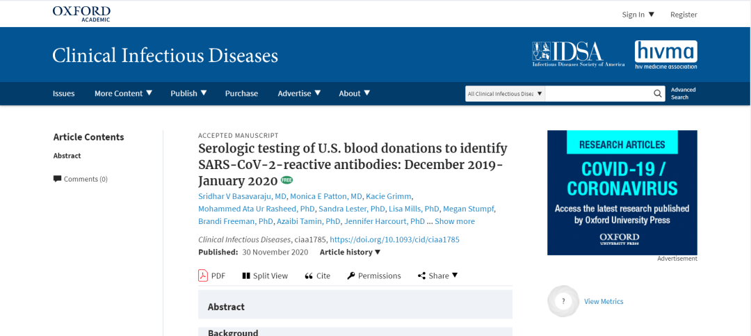 11 月 30 日, Clinical Infectious Diseases 電子刊中,美國(guó)疾控中心人員表示,「美國(guó)新冠感染病例可能在 2019 年 12 月就已經(jīng)出現(xiàn),早于此前的發(fā)現(xiàn)」。