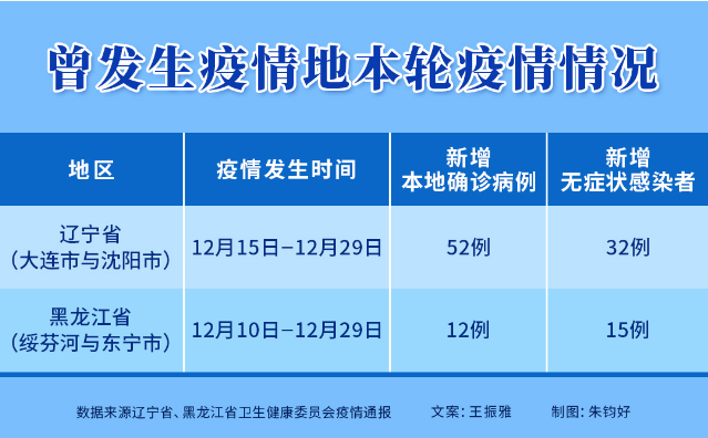 12月15日,遼寧省大連市新增2例無癥狀感染者。遼寧省疫情出現(xiàn),截至12月29日,15天內(nèi),遼寧省大連與沈陽兩市本地新增病例52例,新增無癥狀感染者32例。遼寧大連上一波疫情是發(fā)生在7月22日凱洋海鮮公司的聚集性疫情,8月30日,此輪疫情病例清零。