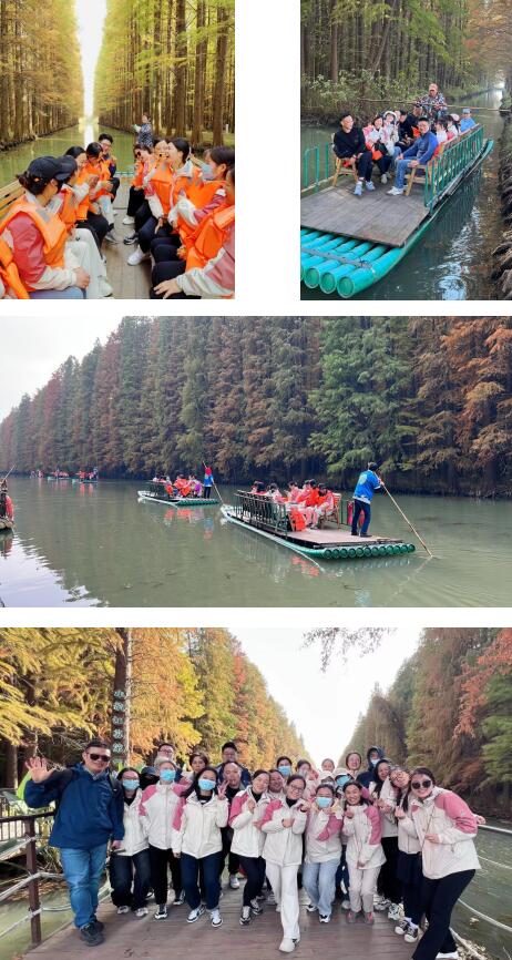 接著大家來到了金湖水上森林景區(qū),這里素有“池杉王國(guó)、鳥類天堂、天然氧吧”的美譽(yù),大家觀賞著水潺池杉林,鴨游蘆葦間,漫步林中小道,腳踏松軟杉葉,耳伴鳥鳴蟲吡,靜聞草木芬芳,到處都是絕佳的拍照勝地,為整場(chǎng)活動(dòng)添色增彩;在竹筏漂流環(huán)節(jié),大家在水上欣賞紅黃綠三色衫樹森林和“一線天”、“迎客杉”“萬(wàn)佛朝宗” 等景觀,坐在士制竹筏上順?biāo)?,仿佛置身于山水之間,流連于田園風(fēng)光,使人忘記了都市的喧囂和煩雜。