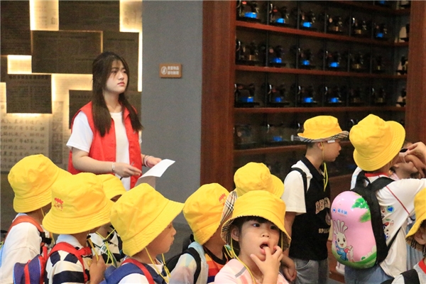 實(shí)踐團(tuán)引導(dǎo)少年兒童參觀博物館