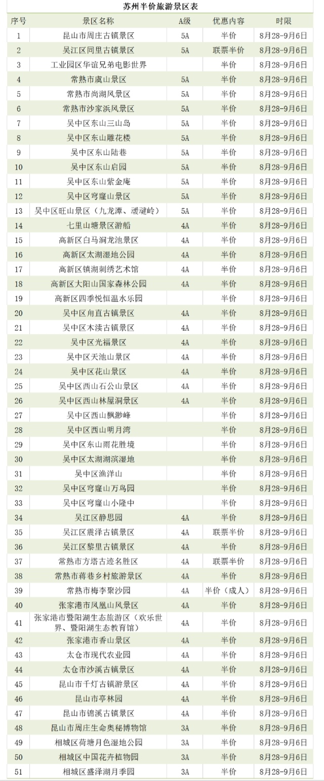 蘇州51家A級(jí)景區(qū)門票半價(jià)優(yōu)惠!