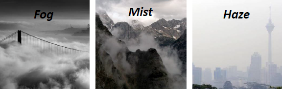 Mist和fog是由空氣中的小水滴造成的,它們倆區(qū)分的條件是你能看清楚的距離有多遠(yuǎn)。如果你看不到超過1000米的航空視野范圍,看不到超過200米的城市視野范圍,這種情況被稱為fog。如果您能看到的視野范圍更多,那就是mist(薄霧)。