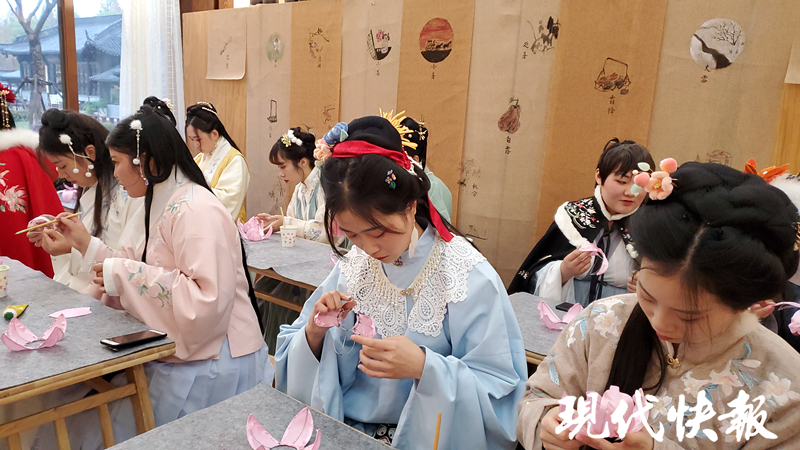 當(dāng)天,還有眾多漢服愛好者走進(jìn)瘦西湖,展示中華傳統(tǒng)服飾之美。漢服愛好者們走進(jìn)匠心藝術(shù)館,體驗(yàn)宮燈制作;走進(jìn)美食街坊內(nèi)的非遺體驗(yàn)館,在雕版老師的指導(dǎo)下,親手印制出雕版印刷作品;一同制作薺菜湯圓,體驗(yàn)傳統(tǒng)文化的魅力。