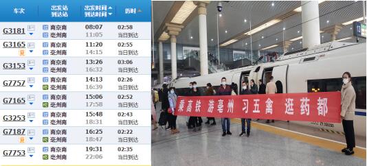 現(xiàn)隨著南京至亳州的高鐵開通后,便利的交通網(wǎng)絡(luò)縮短了南京市民至亳州旅游的出行時(shí)間,加強(qiáng)了亳州市文旅與南京市民的交流互動(dòng),使更多的南京市民可坐高鐵游亳州,品美食,住民宿。