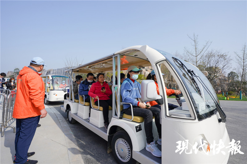 △市民有序排隊(duì)乘坐游覽車(chē)