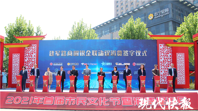 當(dāng)天,活動(dòng)在大型歌舞《贊贊新時(shí)代》中熱烈開(kāi)場(chǎng)?,F(xiàn)代快報(bào)記者從現(xiàn)場(chǎng)獲悉,全系列活動(dòng)在5月份持續(xù)開(kāi)展,現(xiàn)場(chǎng)活動(dòng)集中在五一假期。1-3號(hào),每天下午都有精彩的展演活動(dòng),晚場(chǎng)還有魅力T臺(tái)秀,品牌發(fā)布會(huì)等。此外,建軍路商圈借五一黃金周之勢(shì),推出讓利惠民活動(dòng),各大商超均進(jìn)行讓利打折,并聯(lián)合多家銀行推出消費(fèi)滿減活動(dòng)。