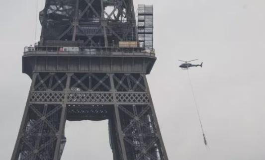 工程師在法國巴黎埃菲爾鐵塔的塔頂安裝了一根新的通信天線后,鐵塔又長高了近20英尺(6米)。