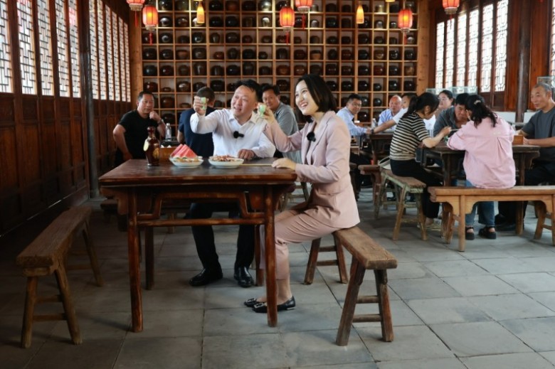 湯溝兩相和酒業(yè)還邀請(qǐng)著名演員句號(hào)前來助力直播和湯溝酒業(yè)董事長(zhǎng)朱耀匯共同為網(wǎng)友送出秒殺福利。