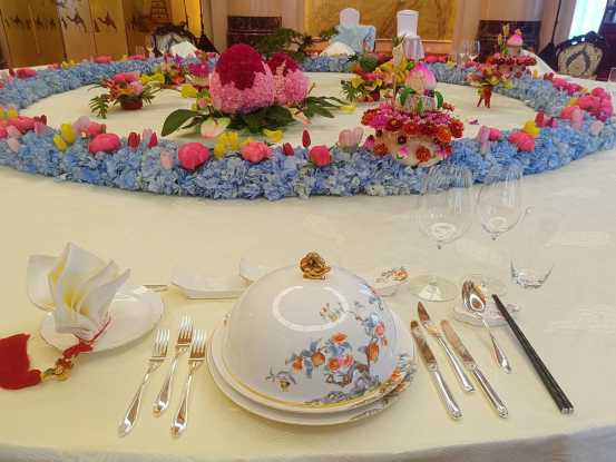 中國-中亞峰會《盛世榴芳》歡迎晚宴現(xiàn)場擺臺實(shí)景
