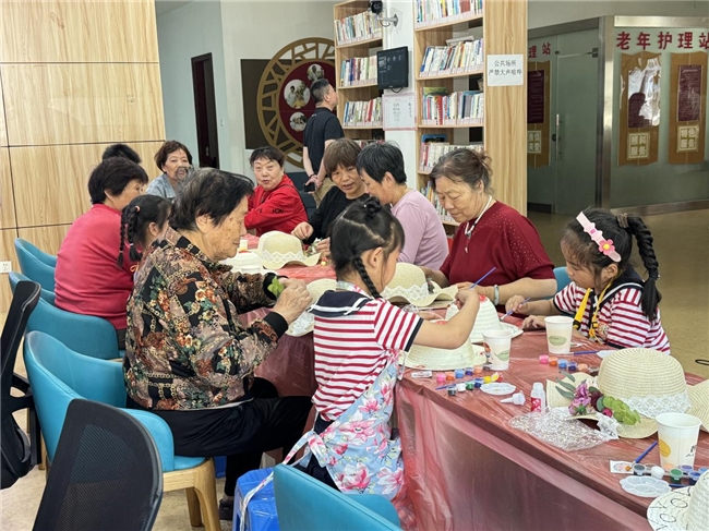 活動(dòng)中,未保志愿者講解了帽子制作的基本方法、選材及花色搭配等技巧,老人和小朋友們共同制作了精美實(shí)用的草帽。在互助交流中,志愿者帶來孩子們與老人們共話家常,關(guān)切詢問老人們的身體健康狀況、飲食起居等情況,鼓勵(lì)老人們能夠以更積極的心態(tài)面對(duì)生活,感受不一樣的花樣晚年生活。