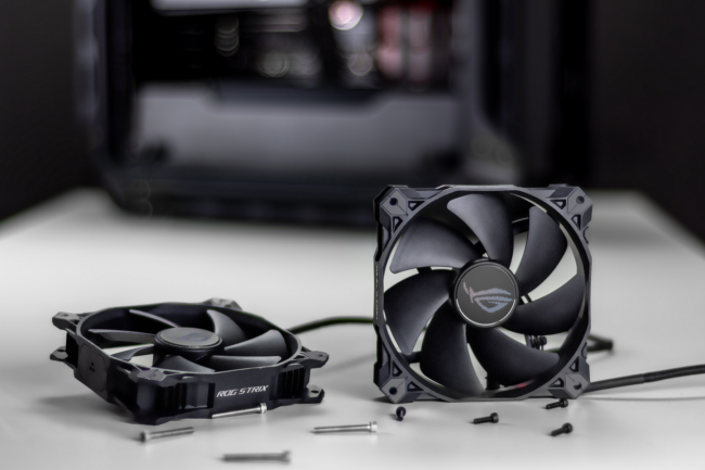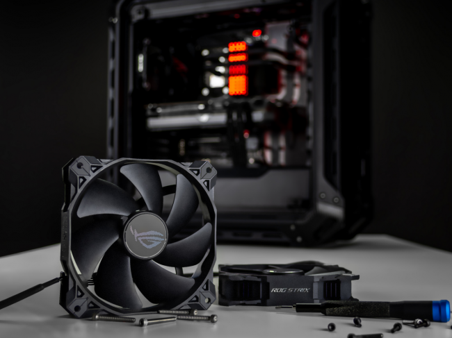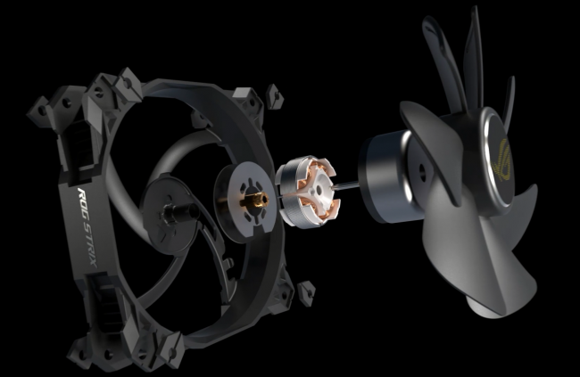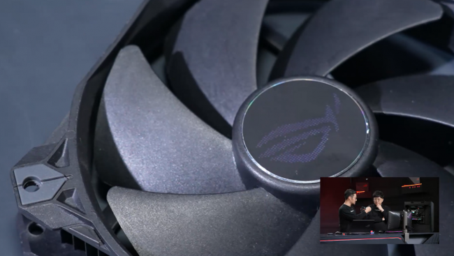 值得一提的是,ROG玩家國度全新設(shè)計(jì)的ROG STRIX XF120風(fēng)神風(fēng)扇也在這次新品發(fā)布會(huì)上重磅登場(chǎng)。從性能上看,這款風(fēng)神風(fēng)扇是經(jīng)過華碩研究人員反復(fù)調(diào)校設(shè)計(jì)的,最小化扇心,有效提高了扇葉面積,從而獲得更強(qiáng)的氣流。搭配能夠提高轉(zhuǎn)子穩(wěn)定性并降低摩擦的360°磁懸浮軸承,和能夠聚攏氣流的扇葉凹槽設(shè)計(jì),減少渦旋噪音的同時(shí),還為玩家們帶來了更加強(qiáng)大且具有導(dǎo)向性的氣流,協(xié)助主機(jī)散熱。