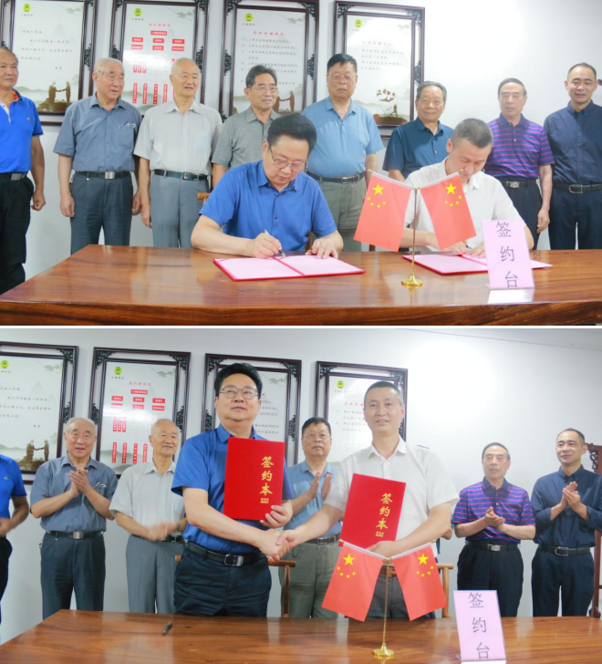 單立海董事長代表江蘇鹽商酒業(yè)有限公司與六朝集團許寧董事長簽署戰(zhàn)略合作協(xié)議。
