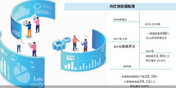 吉比特凈利同比下滑的現(xiàn)狀,與《羊了個羊》的高熱相對照難免顯得有些黯淡。且值得注意的是,2012-2019年期間,吉比特一度穩(wěn)定保持90%以上的毛利率水平,公司年度歸母凈利潤從2012年的1.59億元一路飆升至2021年的14.68億元。2017年,吉比特還因股價超越茅臺成為當(dāng)時最貴的股票,并被譽為“游戲茅”。
