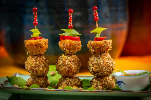 他們身處喜慶熱鬧的直播間,在國際名廚甄文達(dá)的帶領(lǐng)下,加州小姐梁瀅也一起加入到烹飪的環(huán)節(jié)中,為大家?guī)砹藰O具中國特色的三道美食,開心元寶蝦丸,造型如同金元寶一樣,這道菜老少皆宜,彈牙美味。作為廣東人的甄文達(dá)大廚,過年的傳統(tǒng)就是吃盆菜,開心兔年盆菜,盆滿缽滿,豐財聚寶,寓意團(tuán)團(tuán)圓圓,幸福美滿,這道菜食材豐富,營養(yǎng)高,寓意好。最后還有壓軸登場的開心八寶飯,每一道菜中都加入了開心果,不僅色香味俱全,又簡單易上手,很適合在中國的新年佳節(jié),用來招待親朋好友。